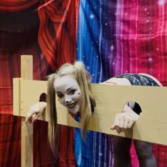 Messymissmia was pied in the face with a real-crust pie by Big Bird the Clown
