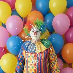 Big Bird the Clown had his head turned into a pie sandwich by messymissmia
