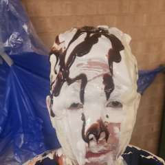 Michiganpie1 was surprised by StagedStooge with a big sloppy cream pie to the face