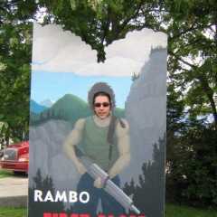 Mary Messhall had a pie put on a stool to be sat on by Big Bird the Clown