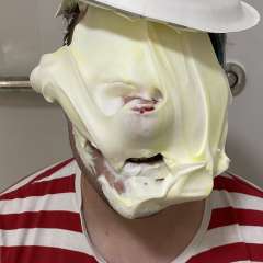 Andrew19 was surprised by KenLondon with a big sloppy cream pie to the face